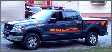 The design used on the Brandywine Regional Police vehicles was a joint effort by the police and graphic design artist Rich Milne of Tam Arte Design Studio in Downingtown. Traditionally police vehicles are white or two tone with black, however, officers wanted to remain with the dark blue color which they had been using for a couple of years. This design was chosen because it was bright, colorful and reflective. The design gives instant recognition to the vehicle as being a Police vehicle and acknowledges the Townships we serve.